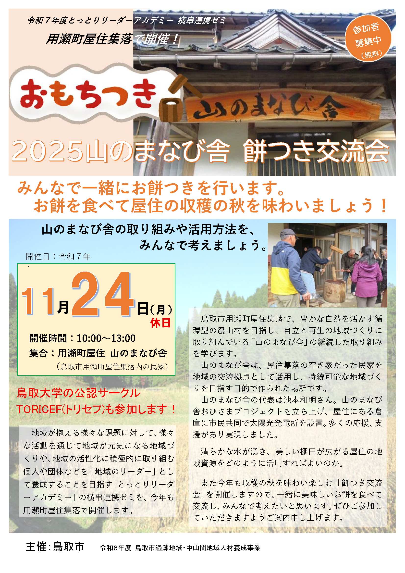 会場:用瀬町屋住 山のまなび舎 ※鳥取市用瀬町屋住集落内の民家