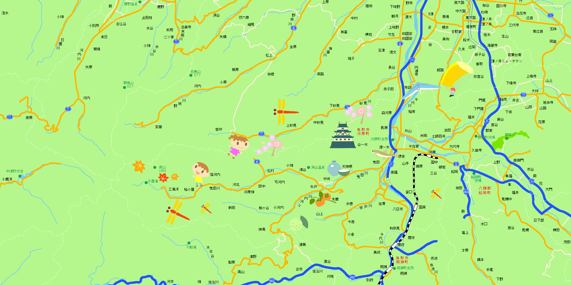 河原支所の近隣マップです。観光プランにお役立て下さい。 クリックすると拡大表示します。