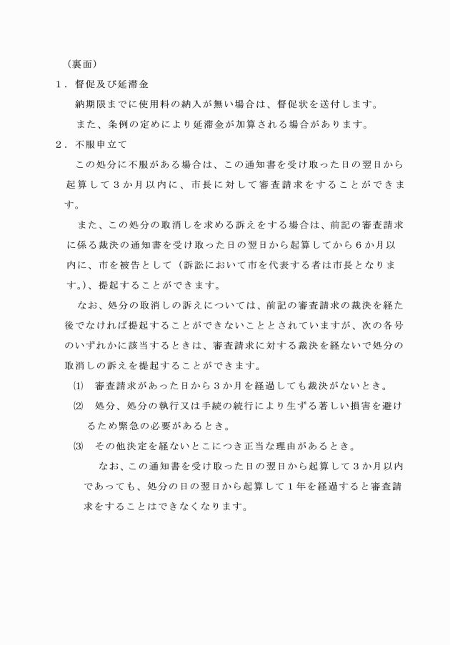 第15条の4 下水道使用料に係る督促は、下水道使用料督促状(様式第14号)により行うものとする。