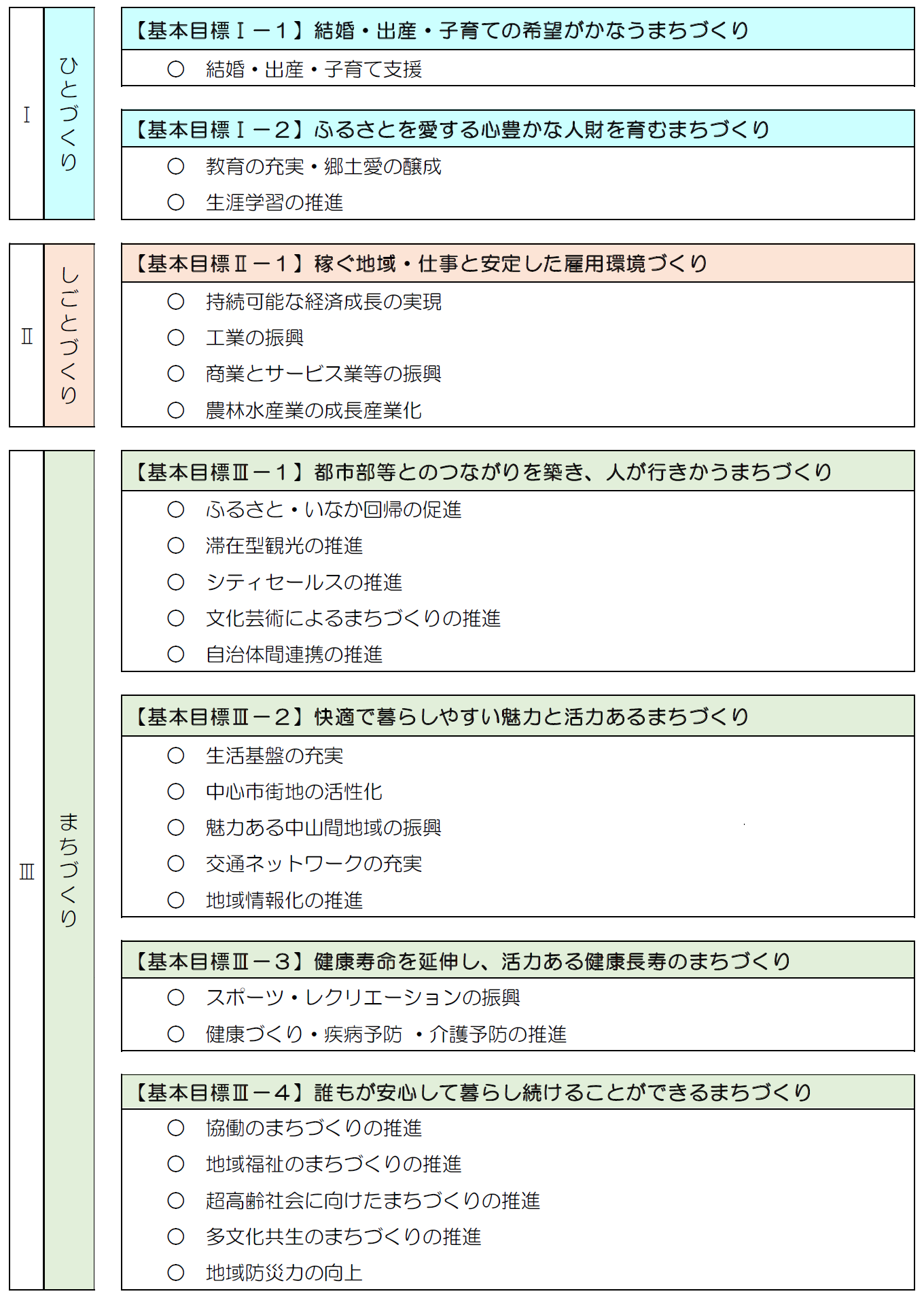 第1期から引き続き、地方創生の中心は「ひと」であることにこだわり、政策の柱の最初に「ひとづくり」を据え、さらに「しごとづくり」「まちづくり」を戦略の柱に位置付けます。