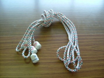 ヒモでつながっている2個のボールをラダー(ハシゴ)に向かって投げ、ボールがラダーに引っ掛かると得点となるニュースポーツです。