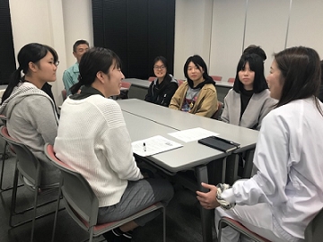 職員の方々に、実際に働いている人が感じていることをお話しいただき、大学生の様々な疑問に答えていただきました。