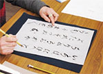 大伴家持が万葉集最後の歌を詠んだ旧正月にひらくお茶会と、児童生徒による書道作品の展示。