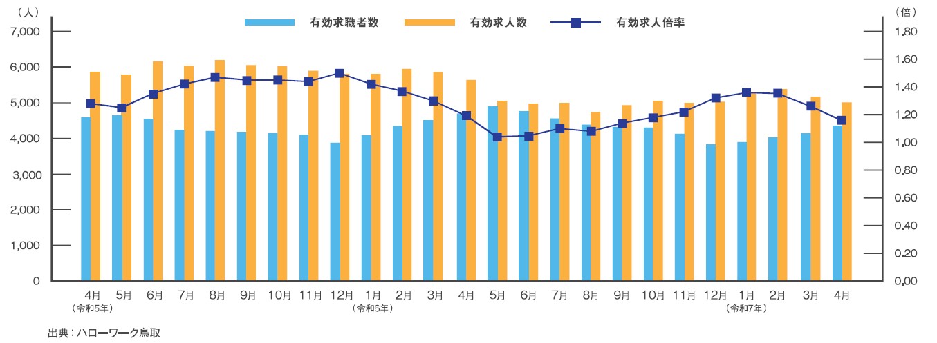 出典:厚生労働省一般職業紹介状況、ハローワーク鳥取(令和7年4月現在)