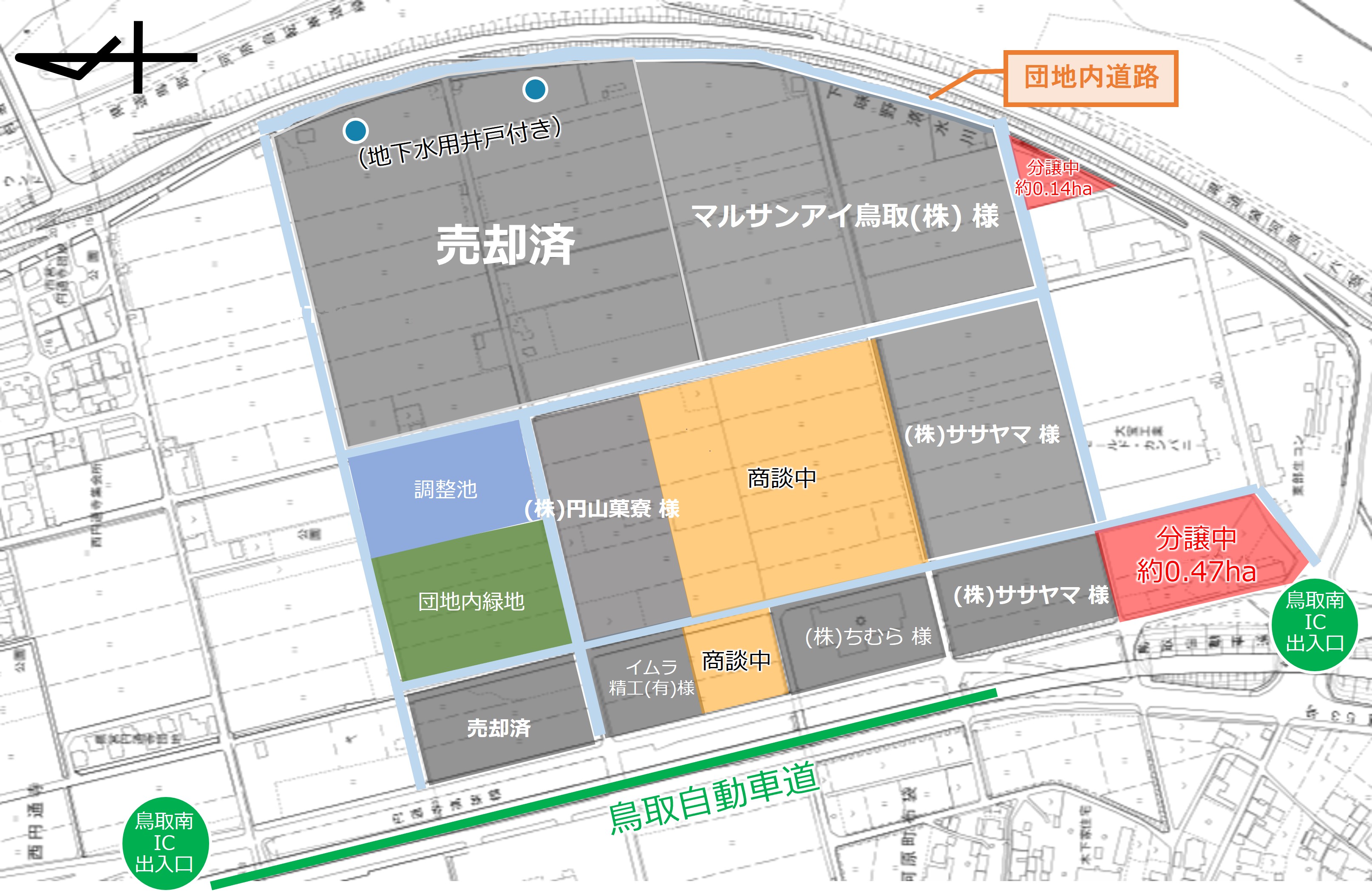 鳥取自動車道鳥取南I.Cに直結しており、交通アクセスに優れた工業団地です。