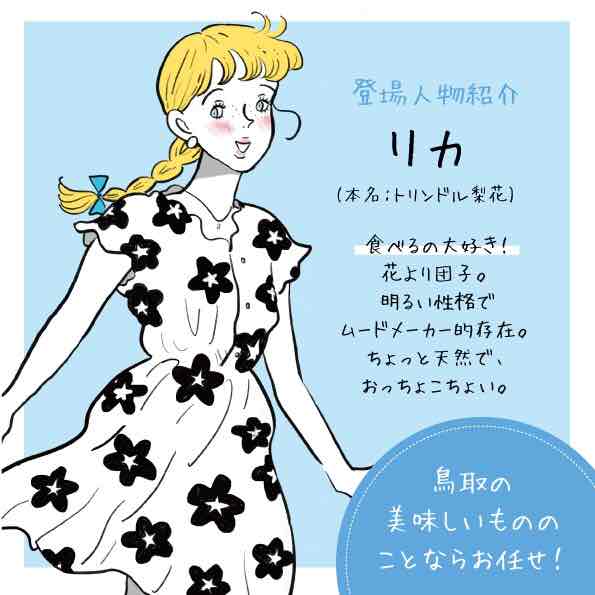 鳥取市出身のイラストレーター伊吹春香さんが描く3人の女子が、食・体験・絶景スポットの担当に分かれ、麒麟のまち圏域の魅力ある観光情報を発信します。3人のキャラクターにはそれぞれ個性(明るい、ロマンチスト、知的)があり、見る方が共感できるものとなっています。また、気軽にご覧いただけるよう“親しみやすさ”を感じることができる記事内容にしています。