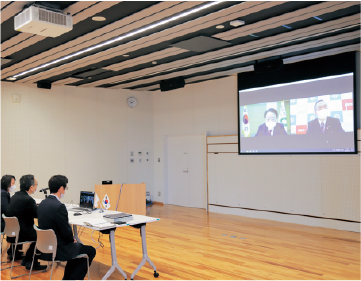 本市の姉妹都市である韓国清州市のハン・ボンドク市長と鳥取市の深澤市長が、オンライン対談でお互いの近況を報告しあいました。姉妹都市提携30周年にあたる今年度は、相互訪問などを企画していましたが、新型コロナウイルスの影響で延期となったため、このオンライン対談が行われました。両市長は、お互いの国のコロナ禍早期収束を願い、「相互に訪問し合える日を楽しみにしている」と話し、友好を確認しました。