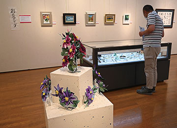 あおや郷土館を会場に、5月29日から6月27日まで「あおや文化まつり2021作品展示」が開催されました。これは、青谷町文化協議会所属の団体・個人の会員が制作した作品を発表するもので、今年で12回目です。会場には、写真、絵画、書道、陶芸、七宝焼、押し花、そして和紙工芸などおよそ60点が展示されました。来場者は、作者が思いを込めて制作した、多彩な作品の数々をじっくり鑑賞していました。