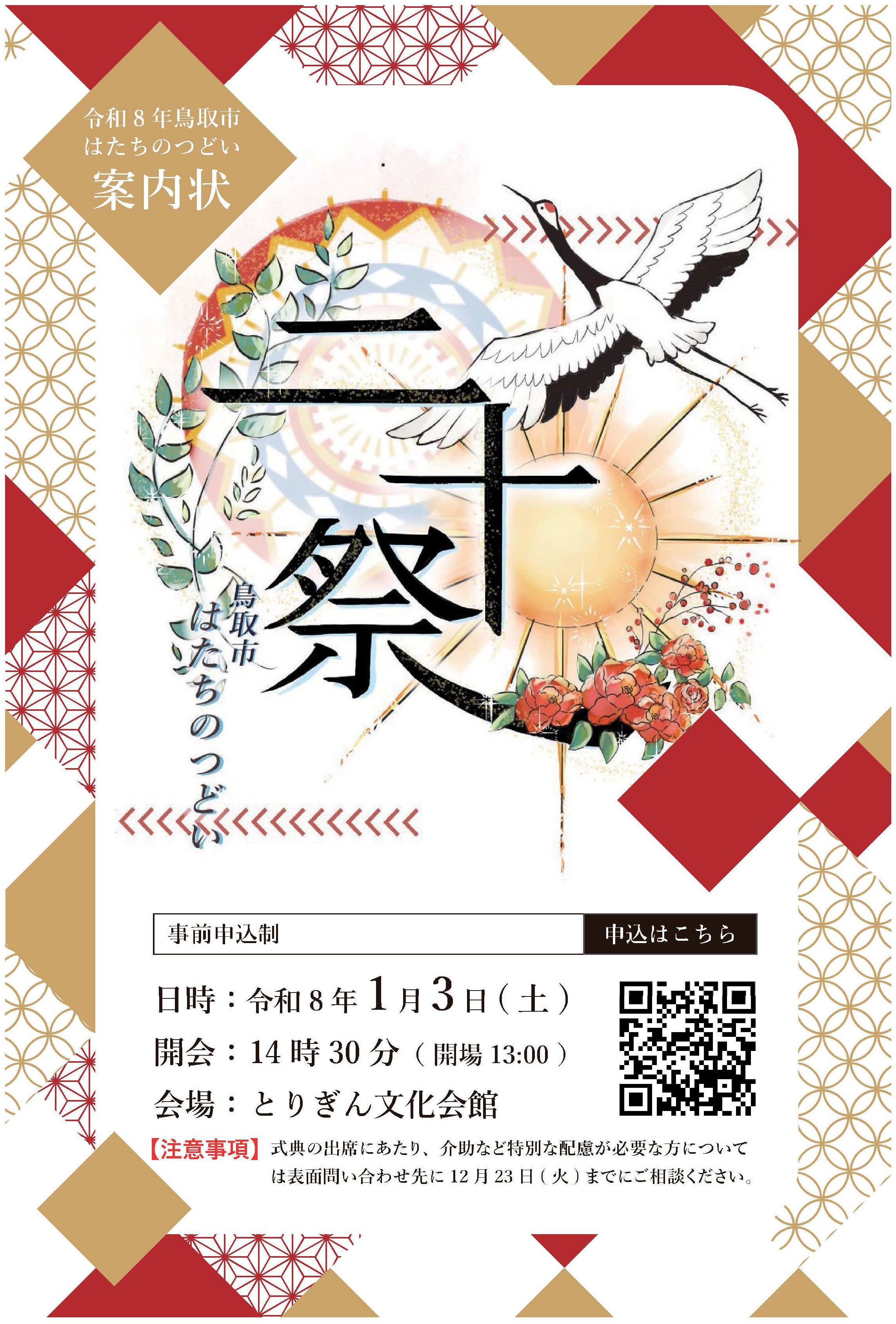 令和8年鳥取市はたちのつどいを令和8年1月3日(土)に実施します。