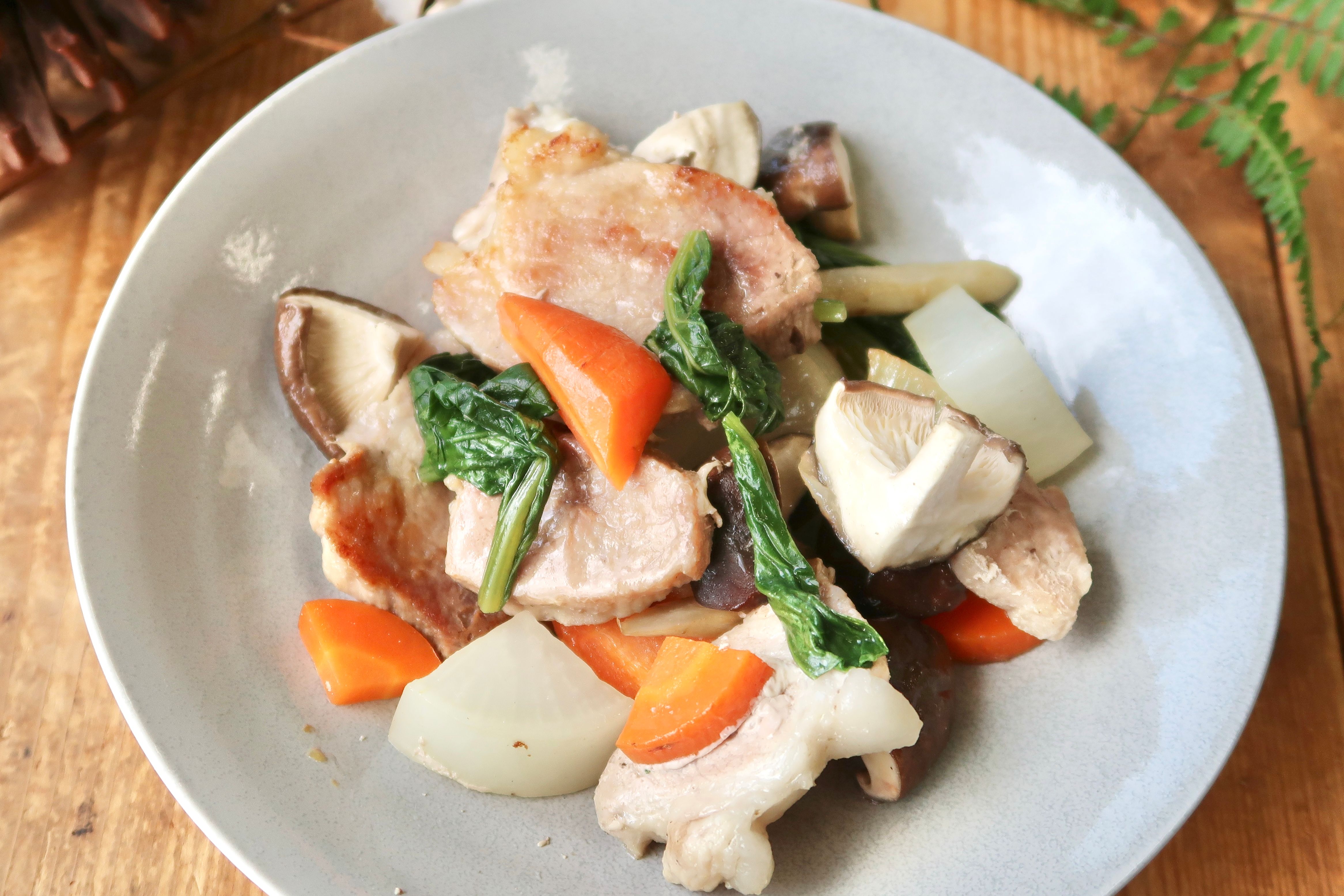 | ●主菜 豚肉と根菜の重ね蒸し | |||||||