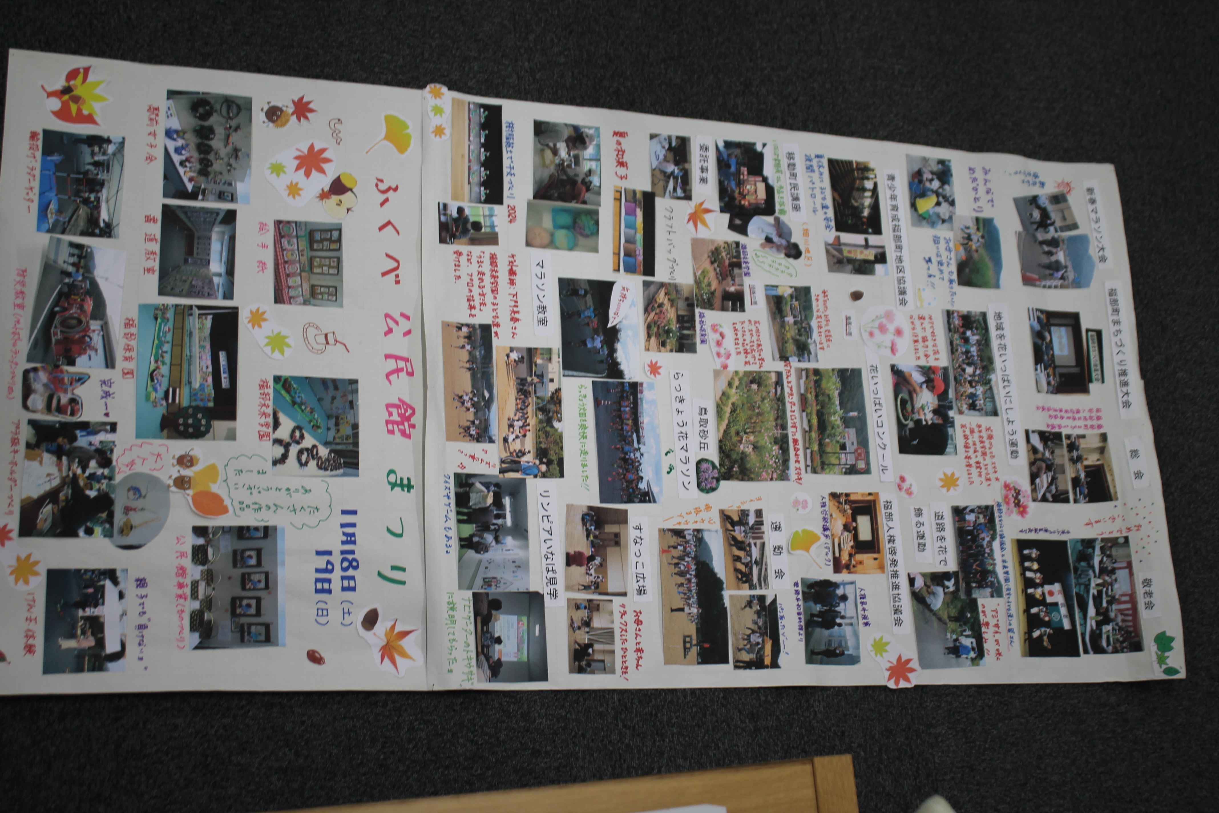 分館も含め市内62館の全地区公民館の活動の様子を、それぞれ模造紙1枚にまとめパネルとして展示しました。