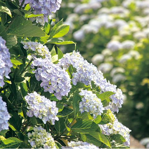やわらかい青色のあじさいに癒やされます。今の時期ならではの光景です。夏はすぐそこですね。
