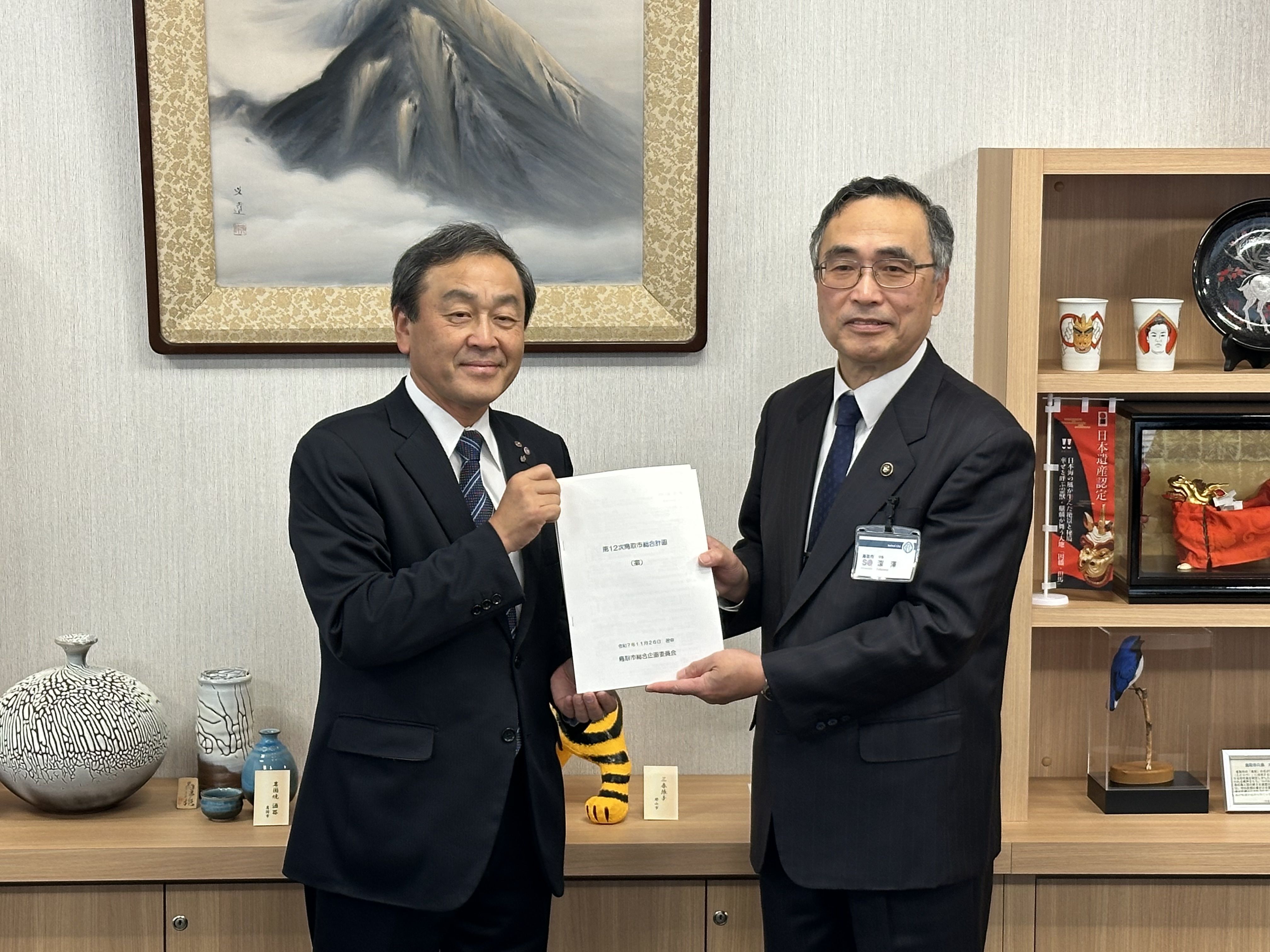 鳥取市総合企画委員会に対し、令和6年5月29日に市長より諮問された「第12次鳥取市総合計画(令和8年度~令和12年度)」に関する審議がまとまり、委員会を代表して、平井副委員長が市長へ答申されました。