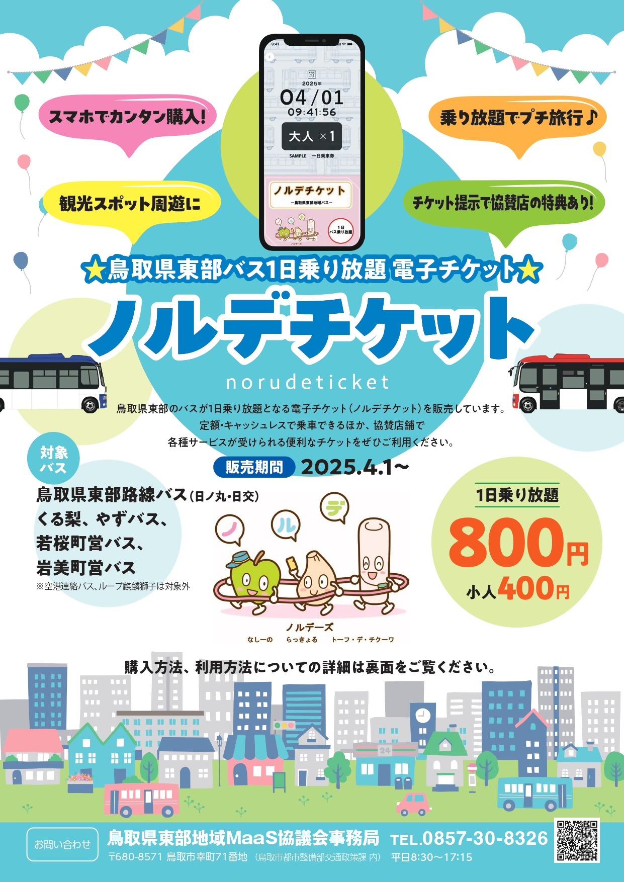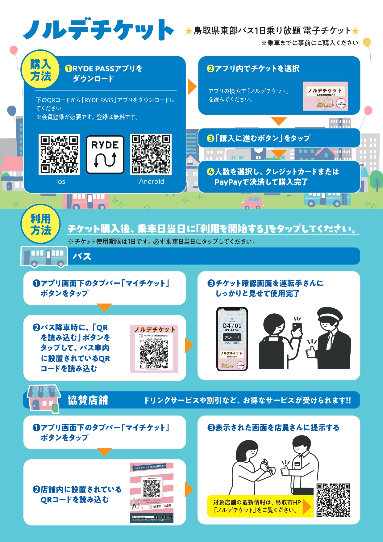 ノルデチケット(鳥取県東部地域バス1日乗り放題電子チケット)の販売