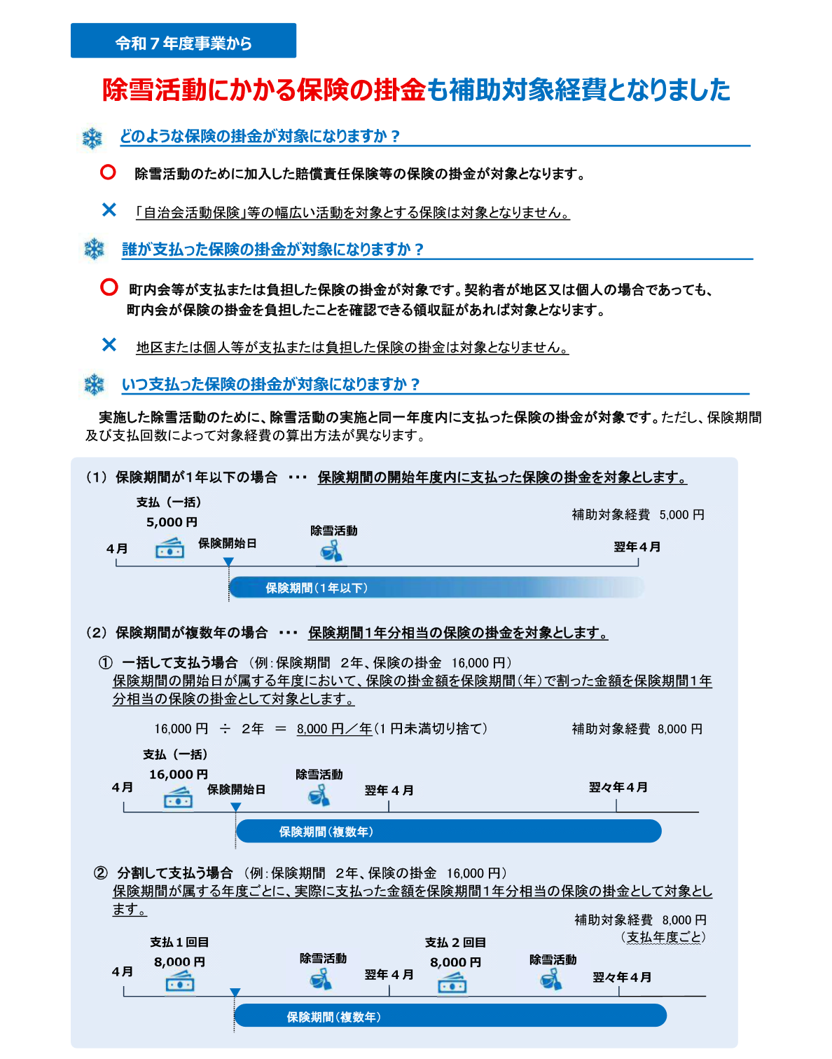 ※新規※除雪活動にかかる保険の掛金も補助対象経費となります。