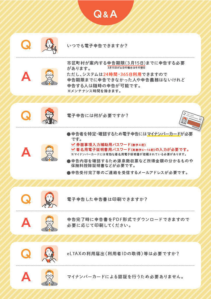 スマートフォンやパソコンで、マイナンバーカードを利用して、eLTAX(エルタックス)(※)から申告手続きができるようになります。