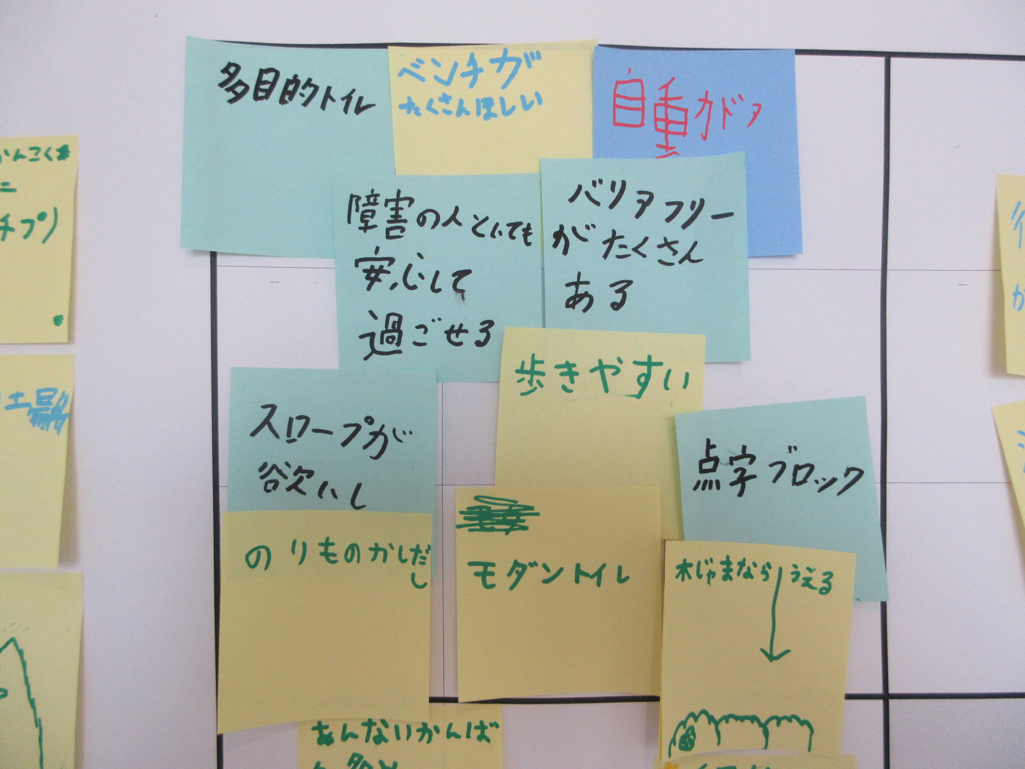 ・一番多かったのは「誰もが安心安全に利用しやすい空間にしたい」という内容の声でした。「(段差が少なく)歩きやすい」、「バリアフリーがたくさんある」など、そんな”使いやすさ”への期待を、ひとりひとりが自分の言葉で説明してくださいました。