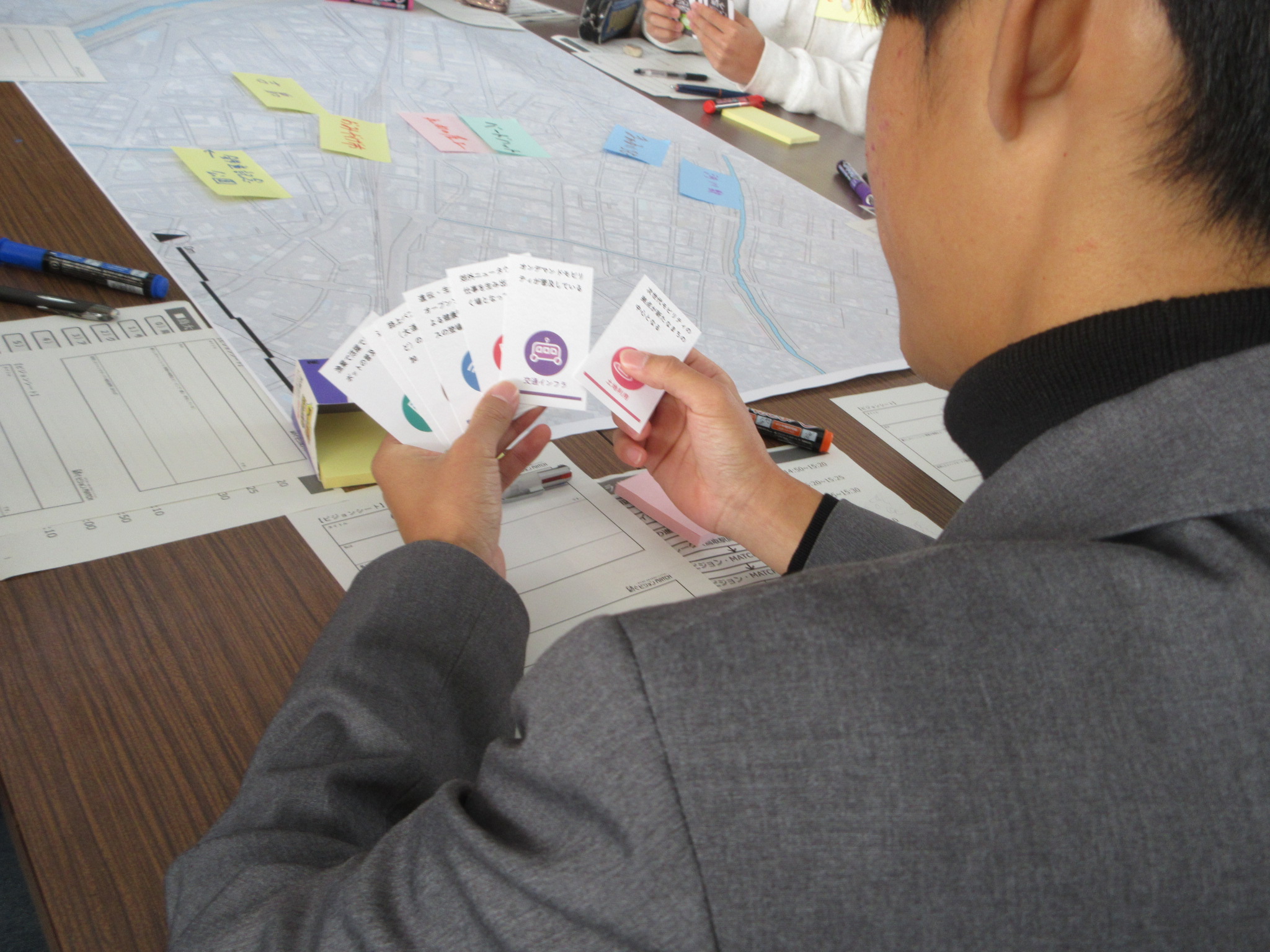内 容:都市計画学会関西支部が製作したまちづくりカードゲーム「紡ぐ・ビジョン・MATCH」を使って、未来のまちやライフスタイルを”紡ぐ”ワークを実施。