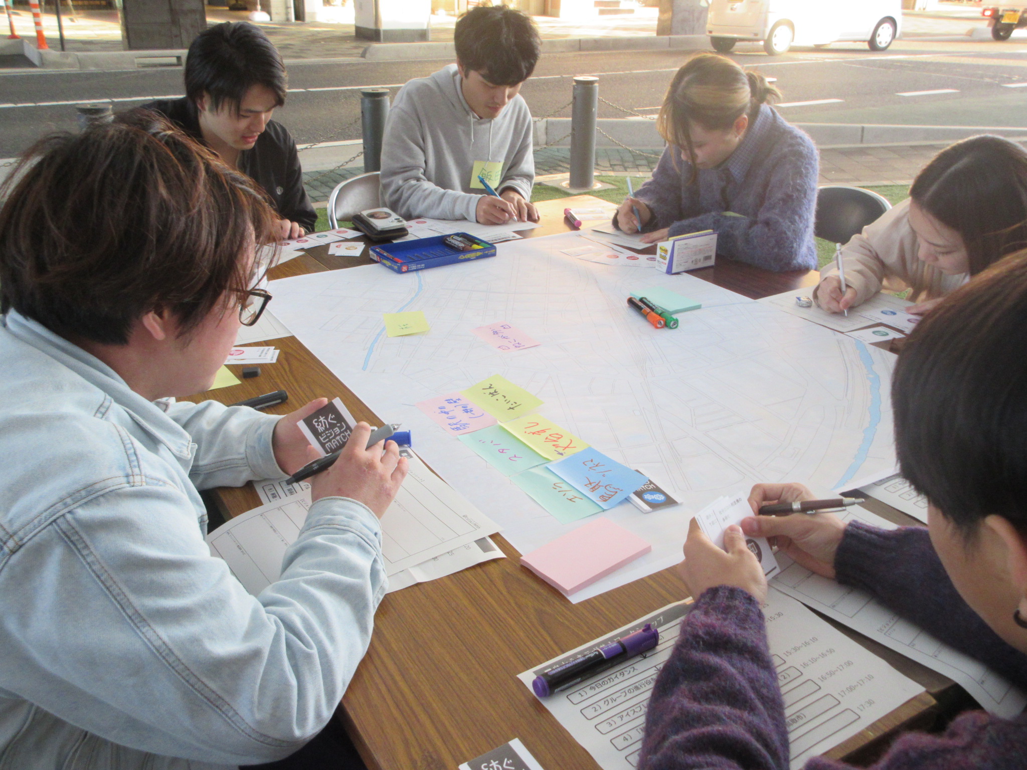 参加者の多くは県外出身の学生であり、鳥取駅周辺は主にアルバイトや飲食を目的に利用しているという声が多く聞かれました。一方で、「自分の好きな場所」として、飲食店だけでなく、桜を観賞できる場所や、落ち着いて座禅ができる場所など、趣味や関心に応じて自分らしく過ごせる環境へのニーズがあることもわかりました。