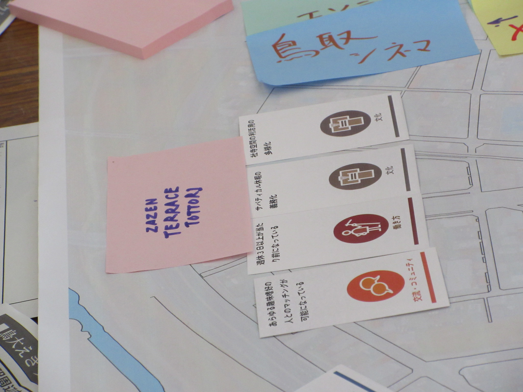 「商業施設が多くあったら、買い物もできるしバイト先も増えるので、駅周辺にもっと来ると思います」といった都市的な利便性に対する素直な意見がある一方、既存施設や特産品などを生かした”鳥取ならではの魅力を感じられるまち”にしていってはどうかという視点を持った発想やコメントも多くみられました。