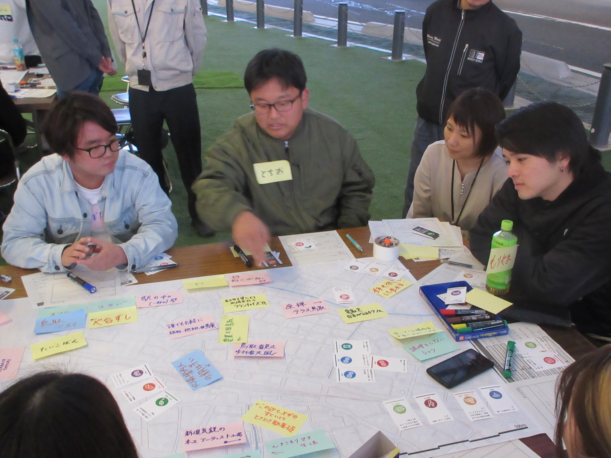 鳥取大学工学部社会システム土木系学科の宮本善和教授主催、鳥取大学地域未来共創センター共催のもと、鳥取駅周辺の新たな風景を描くワークショップ「鳥取大学駅ラボ#1」に、まちなか未来創造課の職員も参加させていただきました。