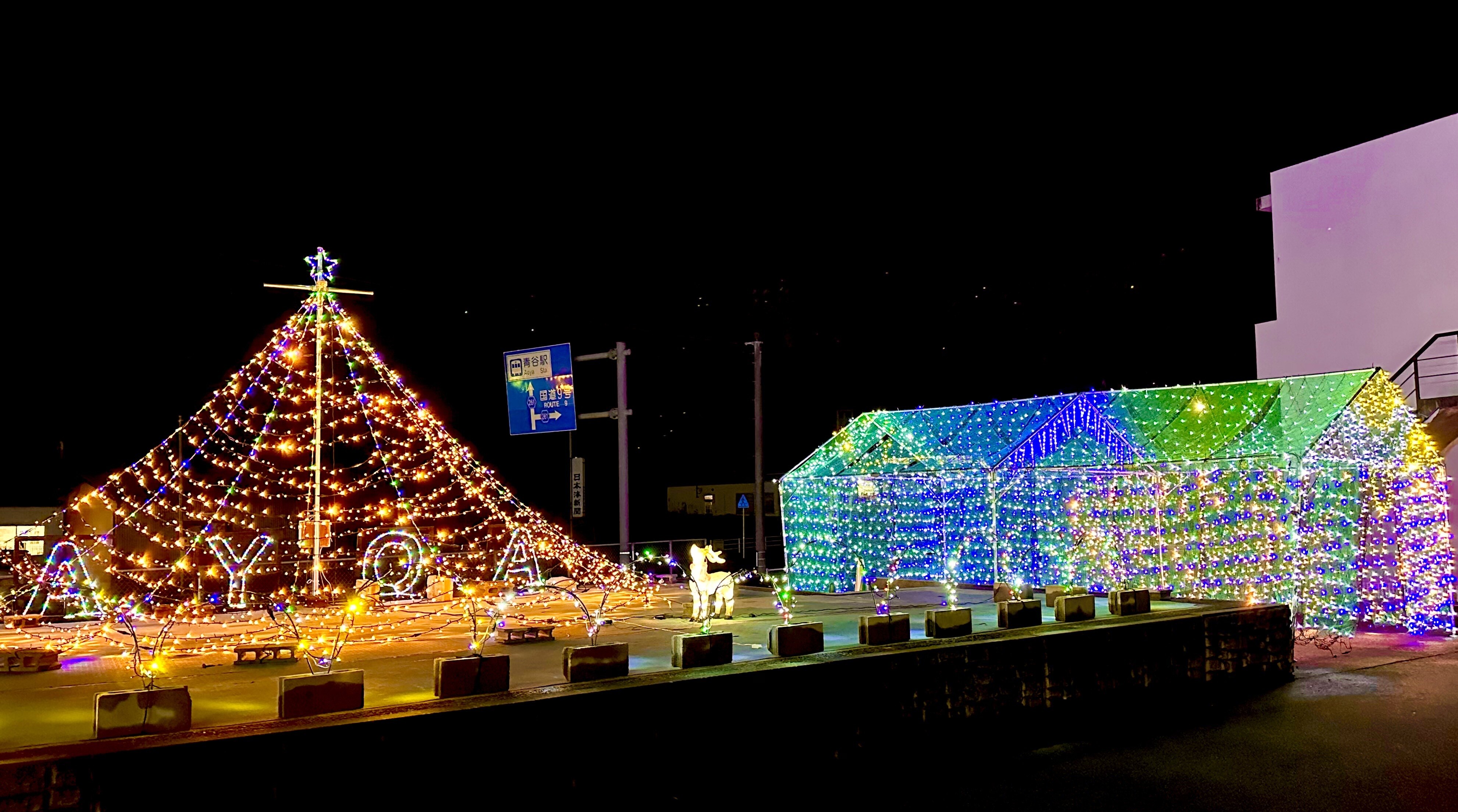 コラボレーションが実現し、幻想的なイルミネーションで青谷賑わいの場が美しい光に包まれています。