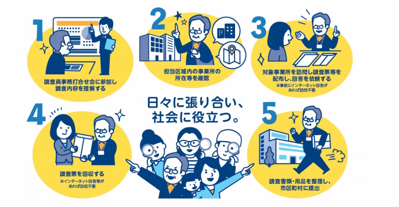 令和8年6月1日を基準日として実施される令和8年経済センサスにおいて、統計調査員として従事していただける方を募集します!